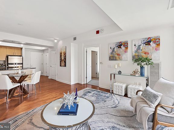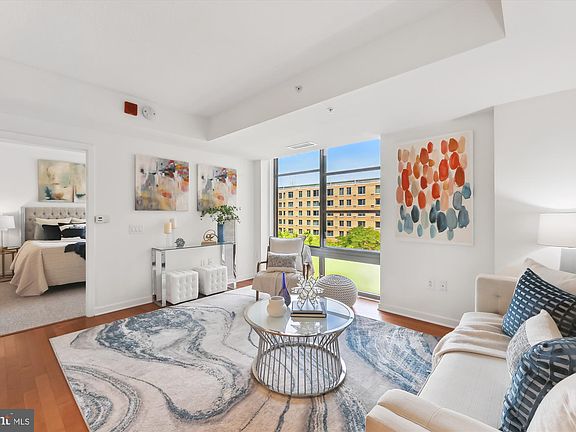 Enjoy living in The K at City Vista located in the Mount Vernon Triangle! Move-in ready, unit 626, is a light filled two bedroom, two full bath unit that is freshly painted. This unit has floor to ceiling windows in the living room, hardwood floors throughout the main living areas, new carpet in both bedrooms, ceramic tiling in the bathrooms and a washer and dryer in the unit. The kitchen has all stainless steel appliances, large pantry, seating space at the breakfast bar and plenty of cabinets and counter space. The primary bedroom has a large closet and en-suite bathroom. The second bedroom has an extra large walk-in closet and access to a full bathroom across the hall. The building amenities are top notch! Enjoy the fitness center, pool, jacuzzi, community grills, library, club room (with wet bar, kitchen, fireplace and big screen TV) all while enjoying the amazing views from the 12th floor roof top! The expansive, private courtyard (accessed via the 3rd floor) has a park-like setting with seating areas and plenty of outdoor space to enjoy. The K at City Vista is located in a super convenient area with many close by amenities such as Safeway, restaurants, cafes, bakeries, Metro stations (Chinatown and Mount Vernon Square) and easy access to The Mall, Museums, Convention Center and so much more! The separately deeded parking space conveys with the sale of this unit. (Disclosure – Unit 626 was originally built as a 1 bedroom/den. The sellers modified the den to a second bedroom with a walk-in closet and regulation bedroom door.)