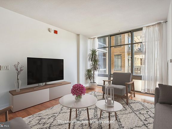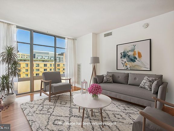 Welcome to this stunning 2 bed, 2 bath home located at The K at City Vista in the heart of Mt Vernon Triangle. As you enter, you'll be greeted by a spacious and open floor plan that is perfect for entertaining. The living area is flooded with natural light from the floor to ceiling windows overlooking the quiet courtyard. Note the gleaming hardwood floors throughout the nearly 1150 square feet of luxury living. The chef’s kitchen is fully equipped with stainless steel appliances, granite countertops, and plenty of cabinet space. The two bedrooms are located on opposite sides of the living area, providing maximum privacy. The primary bedroom offers a peaceful retreat, with an en-suite bathroom featuring a spacious shower and a large walk-in closet. The second bedroom is perfect for guests or as a home office, has ample closet space, and is served by a second full bathroom. This unit also comes with a separately deeded parking spot close to the elevator and a storage unit, making city living even more convenient. The building amenities include a rooftop terrace with pool and grilling area, community room, library, and a 24-hour front desk. Located just steps away from the metro, great restaurants, shops, and entertainment options, this pet friendly condo offers the perfect combination of comfort, convenience, and luxury. Don't miss out on this amazing opportunity to live in the heart of DC!