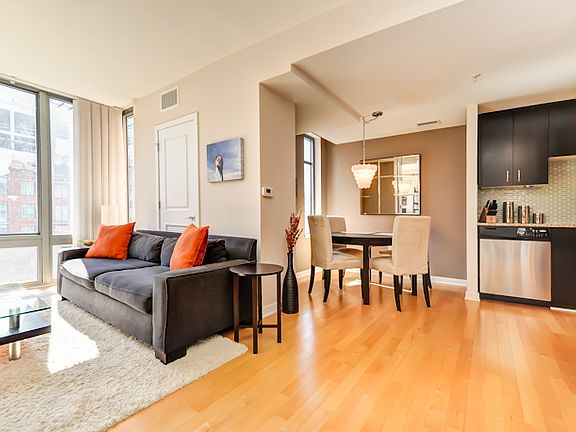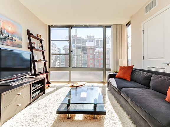OPEN SAT + SUN, 2-4pm! Bright 1BR+den/1BA unit w/ floor-to-ceiling windows + open floor plan. Stunning hardwood floors + high ceilings. Spacious + airy kitchen fts granite, stainless steel appliances, + kitchen island w/ bkfst bar. Master BR has large walk-in. Multiple closets for extra storage. W/D in unit. Garage parking. Exceptional amenities at CityVista: pool, front desk, party room, + more....