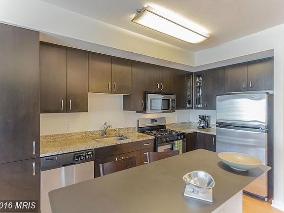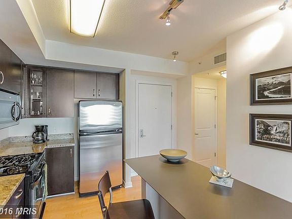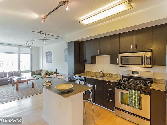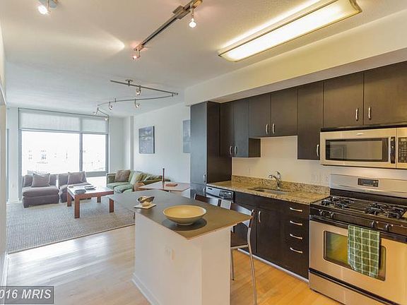 Light-filled 1BR + den with balcony overlooking city views. Hardwood floors, open floor plan. Modern kitchen with granite counters and a custom-designed island for additional work space. Track lighting installed in living room and kitchen. One assigned garage space. Full service bldg offers 24 hr security, pool, rooftop deck w/ full kitchen, library and more. Will NOT last long. Open Sun 1-4