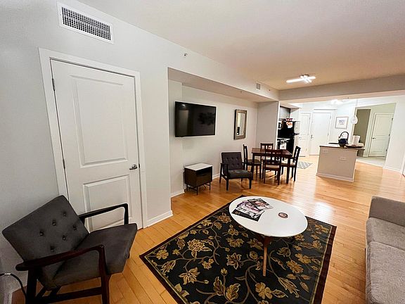 Tastefully furnished one bedroom plus den, 1.5 bathroom unit with modern finishes and plentiful natural light. Can also be made available unfurnished. Water and gas included. Expansive city views, large master bedroom in this spacious unit in The K at City Vista. Den is perfect as a study or home office, and has a half bath adjacent. Open-concept condo features high ceilings and hardwood flooring that flows through the main living space with large windows that stream natural light. Large kitchen with built-in island, granite countertops, upgraded backsplash, stainless steel appliances with gas cooking, and a pantry. Open living and dining room is a perfect space for entertaining guests or just relaxing. Bedroom offers new carpet and a large walk-in closet. Newly renovated bathroom featuring luxury shower with dual shower heads. In-unit washer/dryer. Unit is fully furnished. The K at City Vista is one of the best condo buildings in DC, offering a massive roof deck with a heated pool, hot tub, and grills overlooking the DC cityscape along with one of the largest private parks in DC. The building features a 24 hour concierge, on-site management, club room, and library. On-site Safeway grocery store, on-site restaurants, on-site Vida gym. Located between two metro lines, a few blocks from I-395. Garage parking may be available for an additional fee. Deposit: Equal to One Month's Rent Move-In Fee: Tenant Pays All Move In/Move Out Fees charged by condo association Water, gas, and trash included. Renter pays all other utilities. Deposit: Equal to One Month's Rent. Move-In Fee: Tenant Pays All Move In/Move Out Fees charged by condo association. Garage parking may be available for an additional fee.