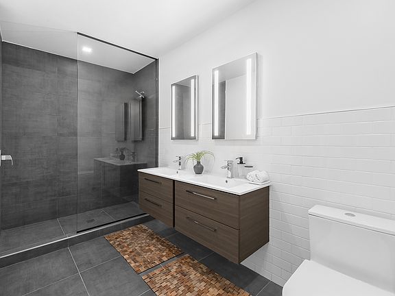 OVERSIZED ALCOVE LOFT STUDIO Experience a luxurious rental lifestyle in one of the city's most desirable waterfront neighborhoods in this impeccably crafted 1-bathroom studio at Williamsburg Lofts. Contemporary design and post-industrial flair coalesce in pristine interiors spanning 820 square feet. Beautiful Terra Legno wide plank white oak floors provide warm organic tones to balance exposed ducts and pipes and concrete ceilings and accent walls. Oversized factory-style windows and soaring ceilings invite an abundance of northern light. The home begins with a lovely foyer with a large reach-in closet and an immaculate full bathroom. The bathroom has white subway tile walls, oversized ceramic tile floors, a custom floating vanity, a contemporary Kohler vanity mirror with integrated LED lighting, stylish Pfister fixtures, and a deep soaking tub. Beyond the foyer is the main studio space featuring a huge north-facing window and plenty of room for a distinctive sleeping nook. The gorgeous single-line kitchen is adorned with custom Biagio Lucenti cabinetry, chic Silestone Poblenou countertops, and stainless steel appliances from GE and Bosch. Finishing the home is a sizeable walk-in closet and a stacked Bosch washer and dryer. Williamsburg Lofts is a brand new rental building situated on a quiet waterfront street moments from all the best restaurants, bars, cafes, and shops that the neighborhood has to offer. Peter Luger Steak House, L'Industrie Pizzeria, and Michelin-starred Meadowsweet are all nearby. The building is also close to Schaefer Landing and Domino Park, both relaxing green spaces overlooking the East River and Manhattan skyline. Residents enjoy a part-time concierge, cold storage, package room, a commercial grade laundry room, a pet spa, a movie theatre, a bicycle room, a cinema, a sound studio, and a private fitness center with state-of-the-art weight training and cardio equipment. There is also a spacious rooftop with an indoor lounge and an outdoor terrace with grilling stations and breathtaking city views. Public transportation options include the NYC Ferry, Citibikes, and M, J, and Z subway lines.
