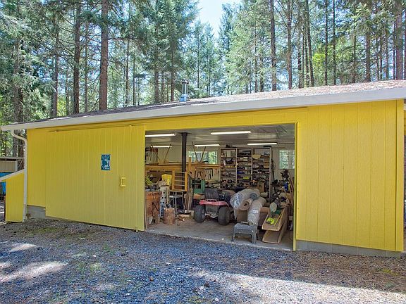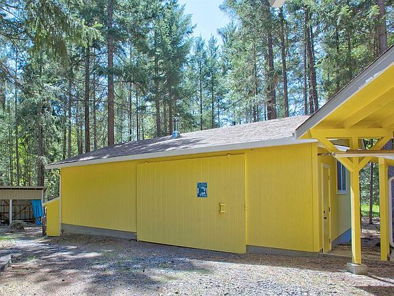 An incredibly beautiful & serene wooded setting with an assortment of trees, a mini apple orchard & lush meadow surrounds this freshly painted, 1782 square foot, 3 bedroom, 2 bath home with den, detached oversized 2-car garage, carport plus 768 square foot shop with air compressor system. The split bedroom floor plan features vaulted ceilings & updated floors. The island, breakfast bar kitchen is spacious and includes an array of solid oak cabinets & pantry. The laundry room has been relocated to the garage in the bath with dedicated water heater and replaced with an extra pantry, but the hookups in the home remain at the ready should one prefer an indoor laundry room. There's a circular driveway & a porte cochere so you can stay dry or shaded while unloading the groceries. Relax in the cool shade of the large covered rear patio and watch the black-tails make their daily rounds just outside the deer fencing. Strong water well too! Call for a look inside today!