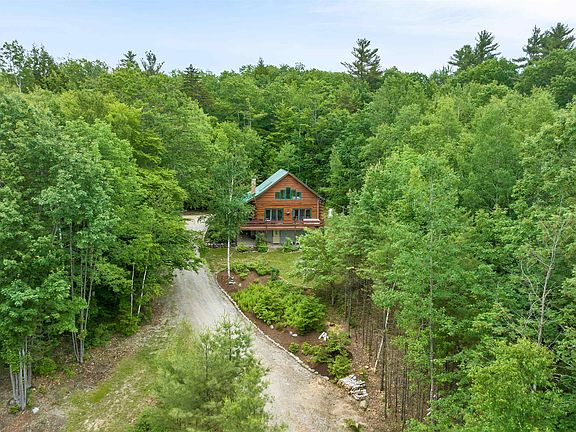 GORGEOUS MOUNTAIN VIEWS FROM THIS TASTEFULLY DESIGNED LOG HOME privately set on 10.66 acres of landscaped and wooded land. The land slopes west directly towards Mount Chocorua and the surrounding mountains to offer great views year round. Relax on the deck or side porch and look at the sunrise or sunsets and have total peace and quiet. Open floor plan with fireplace in the living/dining/kitchen area, two first floor bedrooms, and two second floor bedrooms including a spacious primary bedroom with a wall of windows facing the mountains, sunset, and sunrises. Full, unfinished, walkout lower level, presently used for storage, could be finished into a family room or home office. House features new flooring throughout and freshly painted walls. There is a new drilled well. The property includes a barn structure (in need of a center support beam), which could be perfect for animals or storage. The location is ideal, only five minutes to beautiful Silver Lake and the town beaches and only two miles to King Pine Ski Area, Purity Spring Resort, and ten miles to Conway Village. Great location for a lovely view home!! Present owners use home as a vacation home and do short term rentals. The home is being sold furnished minus a few personal items and with all of the information necessary to continue with rentals as allowed by the town. This is a special property in a great location. Showings begin on Saturday, June 25, 2022.