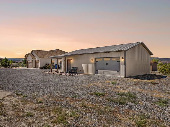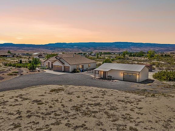 Welcome to your Colorado retreat in Whitewater! This spacious 4-bedroom ranch offers just under 2,300 sq ft of comfortable living space on 5.47 acres, complete with sweeping 360° views of the Grand Mesa, Colorado National Monument, and the Uncompahgre National Forest. Step inside to vaulted ceilings, two generous living areas, a cozy fireplace, a sunny breakfast nook, and a luxurious 5-piece master bath. The thoughtful layout makes everyday living easy while giving you plenty of room to entertain. Outside is where this property truly shines. Enjoy summers by the above-ground pool and deck, relax under the pergola by the firepit, or host gatherings on the oversized patio. The fenced yard is lush with grass and a calming water feature, creating a serene setting you’ll never want to leave. For hobbies, storage, or play, the property features a five-car garage setup, including a 24x40 shop already outfitted with a pool table and dedicated workspace. With HOA-provided irrigation water and room to spread out, this property perfectly blends comfort, recreation, and the beauty of Western Colorado living.