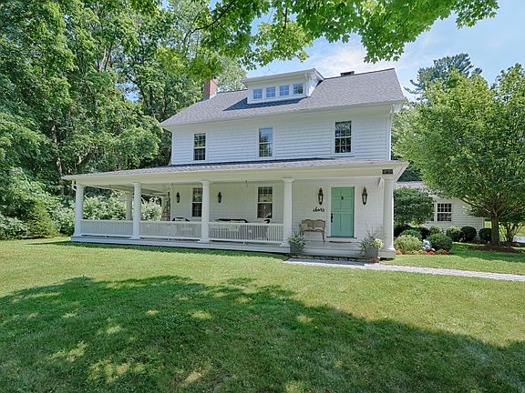 Modern Southport Farmhouse. Former Creative Director of HGTV Magazine's own Dream Home! This light, bright completely renovated 5 bedroom, 3 1/2 bath home blends classic charm of the era with the convenience of modern amenities. Set up on a knoll at the end of a cul-de-sac, this storybook exterior welcomes you with a deep wrap-around porch overlooking private park-like grounds. This one-of-a-kind home with timeless appeal boasts impeccable custom details and professionally decorated finishes throughout. A sunny foyer is open to spacious main level rooms with wonderful flow. French doors open to a large brick patio with an outdoor fireplace and professionally landscaped gardens for relaxed indoor/outdoor living...perfect for entertaining! Fresh white kitchen with shaker style cabinets, quartz countertops, stainless steel appliances, marble subway tile and a large center island. The sumptuous master suite with sitting area and luxurious spa-style bathroom provide a serene retreat. Separate his and her walk-in closets. 4 additional bedrooms including a second master or au pair suite with en suite bath. Attached 4 car garage. Conveniently located 1 mile to Metro North train; close to beaches, shopping, restaurants, and within walking distance to Mill Hill School. A remarkable property only 45 miles to New York City, with access to all that Fairfield and Westport have to offer.