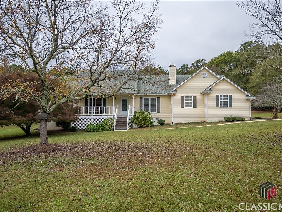 Country setting with this well maintained 3 bedroom 2 bath ranch on 4.75 acres. Interior Features include fireplace, laundry off the eat-in kitchen, separate dining room, great room with brick fireplace, double paned windows, master garden tub, shower and huge walk-in closet, window treatments and ceiling fans throughout, 2 car garage and a sunroom with double paned windows with beautiful view. Kitchen and laundry room has engineered hard wood flooring. Exterior features includes detached 24x24 workshop with electricity and electric garage door. 2nd metal insulated building for storage. Drilled well with water filter system.