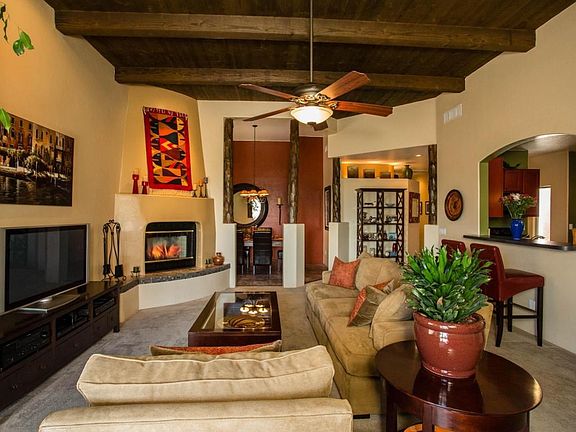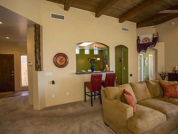 For more information on this property, contact the Listing Agent, Lesha Charnetsky at (520) 918-1446 or LeshaC@LongRealty.com. Gorgeous TJ Bednar home with territorial architecture, high ceilings including rough-sawn plank and beam and vegas in the living/dining rooms. There's a spacious eat-in kitchen with designer accents, a split bedroom plan w/ walk-in closet in master and separate access to a lovely Flagstone patio overlooking the open space of the Pantano Wash. This is a TEP energy guaranteed home that you must see to appreciate all of the upgrades.