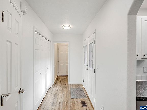 1-level Townhome, open floor plan. 3BR 2 baths, vaulted ceiling, courtyard, deck, fenced backyard. 2024: freshly painted, new carpet, new LED lighting, new window coverings, new door/cabinet hardware, new electrical outlets & switches, new garage door & opener 2023: new laminate floors 2022: new HVAC 2021: new roof, gutters & trek courtyard decking, new french entry doors 2020: new appliances, new toilets/kitchen sink/faucet. Backs to greenspace. 5 minute drive to Linfield. Listing broker related to seller.