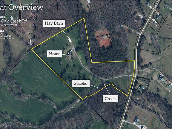 Beautiful two-story, brick home boasting over 17+ acres of pasture land and woods, this property is a must see. This property features unrestricted acreage that is characterized by gentle slopes, a gurgling creek, fenced in pastures, woodlands and unrivaled privacy while being only minutes away from downtown Seneca. The two-story brick home is postured fantastically in the property lending to gorgeous views of your pastureland. As you walk through the front entrance, the dedicated dining room is off to your right and the main floor guest room with access to guest bathroom is to your left. Walking past the staircase, a large living room opens up to a sizable screened in porch behind the home. The breakfast nook, kitchen and laundry room are to your right from the living room as well as the attached two car garage. To your left of the living room is the guest bathroom entrance from the hallway and master bedroom suite including a master bathroom and large walk-in closet. The second floor features two large bedrooms with view of the pastures, one bedroom with an ensuite bathroom and the second with an ensuite office space/flex room. If you're looking for the perfect getaway for your family, privacy and a place to expand, this is the property for you!