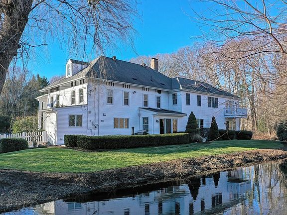 Distinctive & admired Seekonk property set on 2.3 acres nestled between two beautiful ponds. Private & expansive grounds include mature trees & shrubs, custom landscape lighting & a peaceful walking path around the rear pond. Spacious 1st floor boasts a sun-filled open floor plan that includes granite/stainless eat-in kitchen w/ vaulted breakfast nook & sliders to the patio, convenient mudroom w/ laundry, beautiful dining room w/ floor-ceiling windows, cozy family room w/ wood burning stove, separate living room w/ fireplace, full bath & an impressive great room w/custom built-ins & sliders to the backyard. The equally spacious second floor offers 3 sizable bedrooms, & an updated full bath plus a grand master suite that boasts a vaulted ceiling, two walk-in closets, a private balcony, & a luxurious master bath complete w/ custom tile shower, double vanity & separate makeup area. Enjoy nature & beautiful water views from every room. Minutes to Providence & the Boston Commuter Rail!