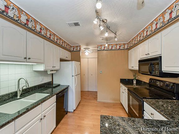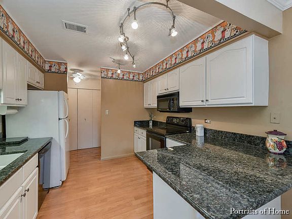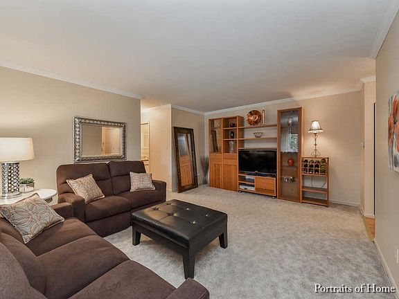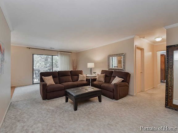 Stylish 2 bedroom, 2 full bath condominium home in popular Raintree offers comfortable one level living. Updated white kitchen with granite counters and breakfast bar. Separate dining room and very large living room with sliding glass doors out to a private balcony. Master suite offers a large walk-in closet and a up-scale remodeled full bath. Updated hall/guest bath. Crown moldings in living room, dining room, and foyer. Clean and bright laundry room and secure storage unit right down the hall. Plenty of parking for you and your guest just steps from the front door. Enjoy the well maintained grounds and amenities including ponds, in ground pool, tennis courts, clubhouse, and exercise facility. Walk to Village Links Golf Course. Close to shopping, highway access, Morton Arboretum, and College of Dupage which offers the renowned McAninch Theater & Arts Center. Sorry, no pets, no rentals, or FHA.
