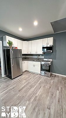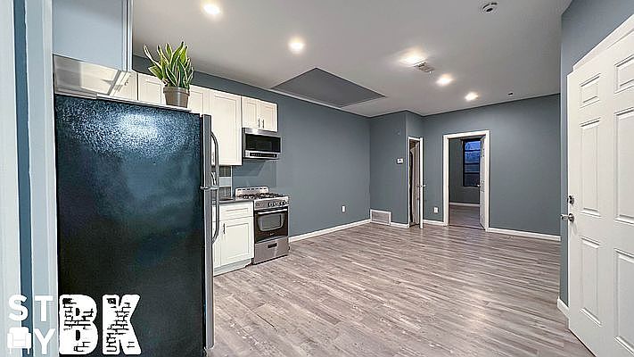 Newly Renovated 4 Bedrooms 2 Bathrooms *Full kitchen with s.s appliances *Sky Light *Hardwood floors *AC Units *Laundromat next-door 2/3/4 Train Eastern A / C Fulton No Brokers Fee Guarantors Welcome Please Contact To View
