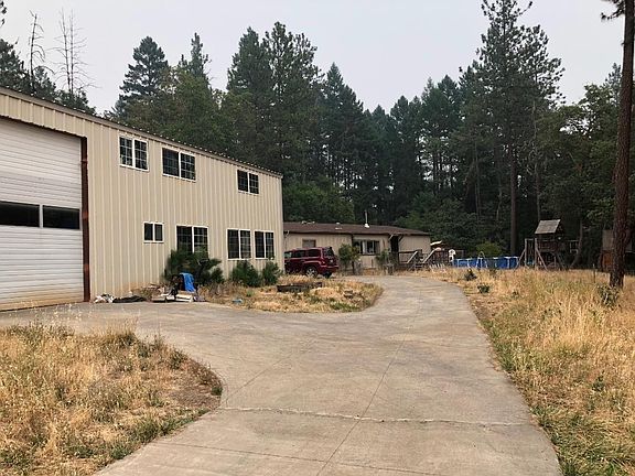 Peaceful setting in a mostly flat quiet 2.5-acre rural lot, which is just minutes from downtown Grants Pass. There is a 1,620 sq.ft manufactured home with 3 bedrooms, 2 bathrooms, and a deck. The home itself needs TLC. There is a large permitted metal garage/shop (42' x 70' x 16') surrounded by a wide concrete driveway. The garage can easily accommodate 3 cars inside. Half of the garage has a second floor. It also has a bathroom. There are 2 power meters, one for the house and one for the garage/shop. There are some evergreen trees and a pasture. There are a lot of possibilities for this property. The property is sold as is. Buyer to do his own due diligence. The property is in Short Sale.