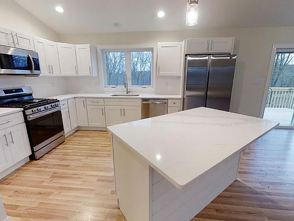 NEW CONSTRUCTION SPLIT LEVEL ON 1.03 ACRES, this new construction split level features, open concept living room with cathedral ceiling and fireplace, kitchen with quartz countertops, island, and appliances, dining area with sliding glass door to back deck, master bedroom with master bathroom with tile shower, 2 additional bedrooms, 1.5 additional baths, propane heat and air conditioning, family room, oversized 2 car garage, poured floor crawlspace, and covered front porch. Seller is a PA real estate broker., Beds Description: 2+BED 2nd, Baths: 1/2 Bath Lev 1, Baths: 2 Bath Lev 2, Eating Area: Dining Area