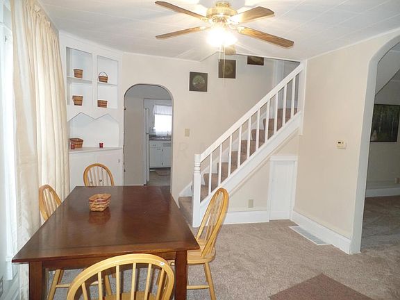 A rare find, this well cared for 2 bedroom home has been updated with newer furnace and central air, hot water heater and some newer vinyl tilt windows plus new roof in 2013 and first floor laundry. Newer carpet and freshly painted. Nice dining room with built in china cabinet and window seat. Brick patio in rear plus 8 x 10 storage building and a 1 car det garage. Well done 1st floor bath. Walking distance to convenience store . Close to St. Rt. 16 for a commuter. Move-in condition.