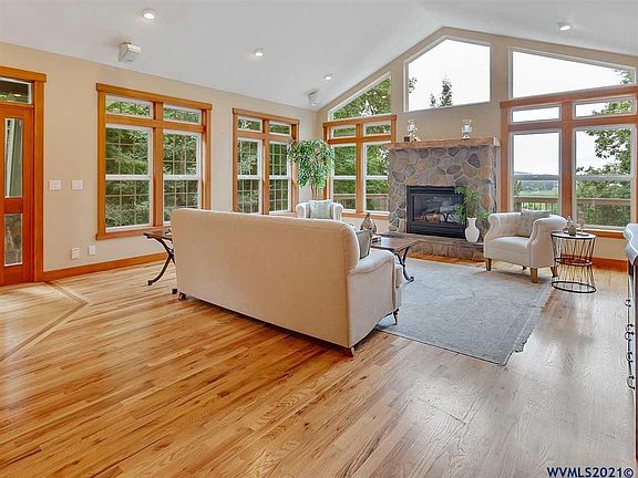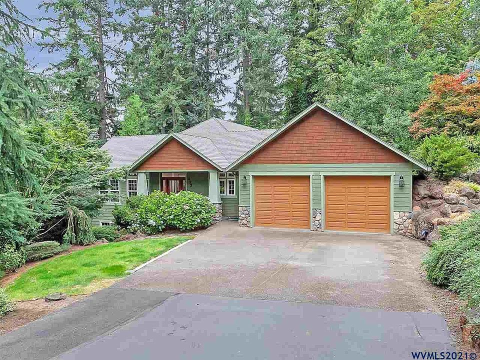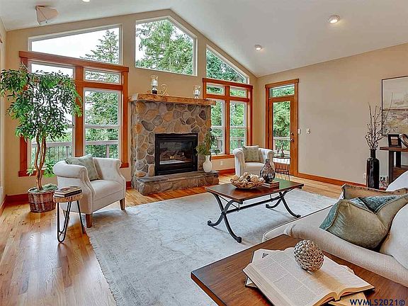 Mature trees on a triple lot surround this 4-bed, 3-bath home with fully finished basement and wonderful views. Perfect for entertaining, the open space great room/kitchen has oak floors, a fireplace, island, 6 burner range, granite counters and a door to the deck. The master has a walk-in closet and ensuite bath; there are another bedroom and bath on the main. Downstairs are a spacious rec room, 2 bedrooms, a full bath and bonus room. Outside are a deck and patio, pizza oven, and a 2-car attached garage.
