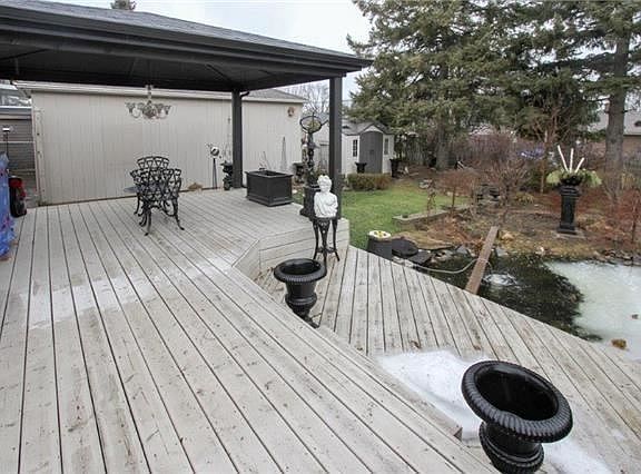 Avid Gardener's Paradise! Professional Front & Back Lawns & Gardens Show Pride Of Ownership! This Lovely 3 Br Home Is Tastefully Decorated And Is Full Of Charm. There Is A Huge 3 Season Sunroom, Overlooks A 3 Tiered Deck, One Of Has A Permanent Sun Shade Over Top Of It. Attractive Feature Is The 16X20 Pond With A Waterfall & Its Stocked W/Koi Fish Which Are Perfect For Outdoor Ponds. New Renovate Basement With New Ceiling And New Floor.