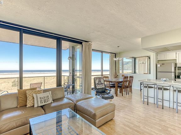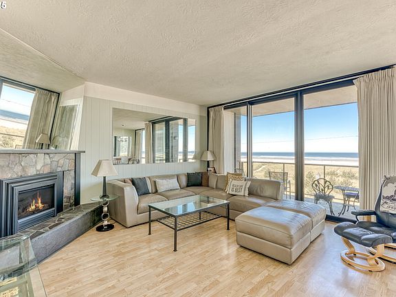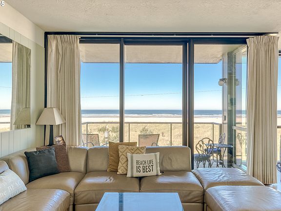 Great opportunity to purchase one of Seasides most popular Oceanfront Sand & Sea Condos. This 2nd floor updated condo with breathtaking Pacific Ocean & Tillamook Head views features an open concept living area, 2 bedrooms, 2 baths, gas fireplace, in-unit washer/dryer hookup, floor to ceiling windows, fully furnished and a private balcony for morning coffee and evening sunsets! The complex has an indoor pool, sauna, elevator access, steps away from the promenade & beach and 1 block to dining, shopping and downtown events. Seaside offers great surfing, fishing, clamming or sitting by the campfire enjoying spectacular sunsets. On-site rental management office. Turn-key investment opportunity!