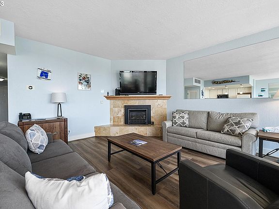 Shake your Money Maker! This stunning beachfront condo offers the ultimate coastal getaway. Dynamic water views, stylish interior bathed in soothing colors, and fully furnished top to bottom, this can be home, your lucrative income property, or both. Enjoy the cozy gas fireplace, spectacular sunsets from the deck, fine dining downtown, and an on-site indoor pool and sauna. Prepare to immerse yourself in sunshine and salty waves while you experience the joys of luxury beach living.