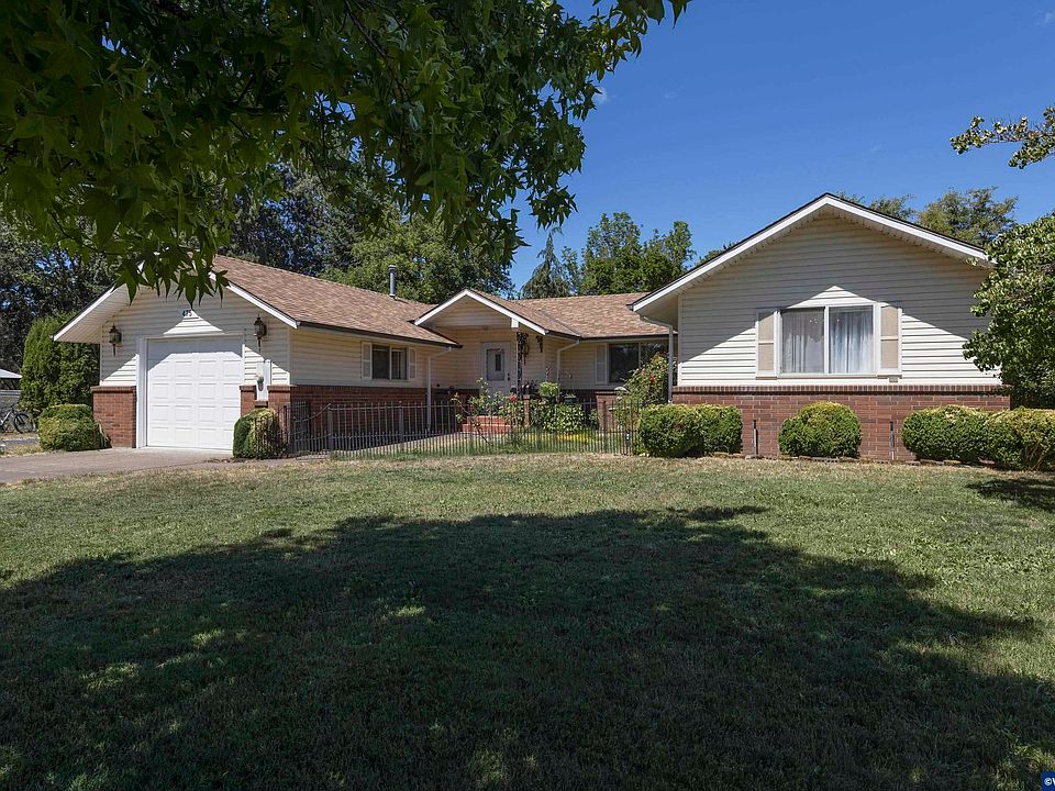 Riverfront Retreat with Shop & RV Parking! This charming French Provincial-inspired, single-level home offers scenic river frontage and incredible utility, complete with RV parking and a large shop! Inside, you'll find a functional floorplan featuring 2 bedrooms, 1.5 baths. The living room opens to the patio and shop via French doors. Kitchen includes oak cabinetry, pantry, and sunny breakfast nook. Formal dining area with a nook/hutch space.