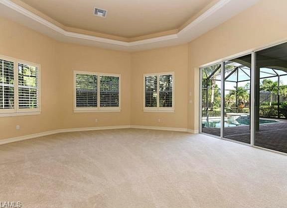 Beautiful home offers privacy inside and out, home is situated facing a nature preserve and backed up on a wooded canal. A spacious floor plan boasting exotic wood floors throughout the main living area gives this beautiful home a distinguished feel. Large 3 Bedroom with Office, 3 full and 2 half baths with heated pool and spa home has all the upgrades one could possibly ask for such as plantation shutters, detailed trim work throughout, accent recessed lighting, custom cabinetry and granite counter tops in kitchen and baths, central vac, monitored alarm system, dry bar, walk-in closets, automatic storm shutters and much more! HOA Fees include Cable TV, Internet, Exterior Pest Control, Landscaping, Irrigation Water, Irrigation System, and Alarm Monitoring.
