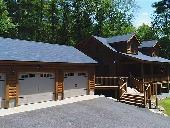 Pride of ownership!! Custom built in 2012, this Log Home is a masterpiece of design and craftsmanship. The home has a three bay garage which leads into a mudroom. Upon entering you will find a beautiful open concept design with custom cabinets and quartz counter tops in the kitchen, extra wide pocket doors, complete with master suite on the first floor & so much more... Top of the line Anderson windows and french doors, Harman pellet stove, central AC & Vac just to name a few. All of this set on two private wooded acres, call today for a private viewing.