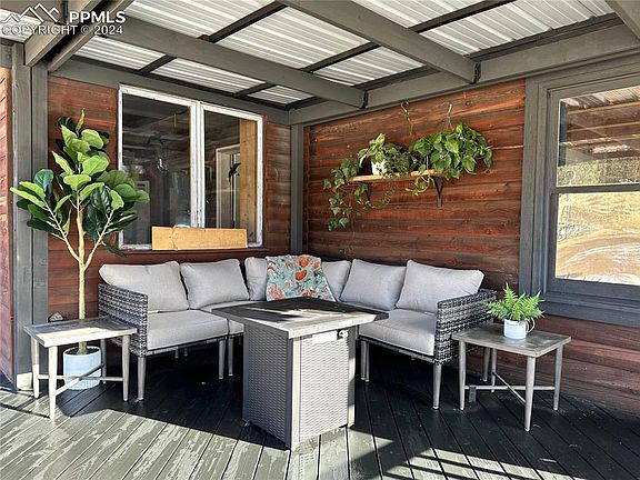 Wonderful 3/2, remodeled mountain cabin located in coveted Bear Trap Ranch. Perfectly tucked off the main road, down an evergreen and aspen tree-lined circular driveway, for peace & privacy. Backs to state lands. Views from every window, great natural lighting & passive solar. With a shop, large shed, plus greenhouse which produces many veggies for its owners. You'll love how convenient this home is located to the blacktop, yet you'll feel like you are away from it all. These 20 acres are serene & beautiful, with gently rolling and highly usable land, with a mix of trees & meadows. Elk, bear and mule deer love to visit this property too. Plenty of space to park your RV and toys, plus a private shooting range and no covenants here. Relax on your covered front porch with seating nook or around the fire pit area for smores. The pups will enjoy the fenced run. Entry comes in through a wonderful mudroom/kitchen pantry with space for your deep freezers. New kitchen features soft close cabinetry, stainless steel appliances, single bowl deep basin sink, butcher block counters, island which seats 4 plus luxury vinyl plank flooring. Spacious DR is open to the kitchen. Great Room has great views and a woodstove. New carpeting. Wood beamed ceilings & T&G throughout are warm, inviting. All beds & laundry conveniently located on the upper lever. Primary suite has private balcony for sipping morning coffee or taking in the fresh evening air and views. Newer roof. LOA is for maintenance of the private ranch roads. Guffey Gorge 10 mins. 20 min to quaint & ever growing town of Cripple Creek for shopping, dining, nightlife, family fun. 45 min to Woodland Park, Canon City, hour to C/S, 80 min to Breck for skiing. Gold metal fishing is nearby in the Dream Stream, 11 mile canyon and Spinney Reservoirs. Welcome home, you'll really enjoy mountain life here! Don't miss this fantastic opportunity to own your piece of the Colorado dream and make this gem of a property yours today.