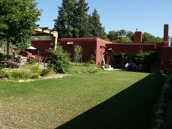 The home is approximately 3000 sq ft, 3 bedrooms, 1 full bath & 2 3/4 bath, plus an office. The home is filled with historic value, built of adobe bricks and vegas throughout the home, that were harvested locally, The doors are 2" thick with hand iron-forged hardware. Beautiful views in a private country setting. The landscaping features a sprinkler system, both front and back. A new roof is included, but not completed at this time. Private fence surrounds the outdoor kitchen covered gazebo area with automatic lighting.This property can be purchased with 2.1 acres for $299,000.00. There is additional acreage available: 7 acres with 6 stall barn, old bunkhouse for additional $100,00.00, or approximate 40 acres including all the above property for $499,000.00.