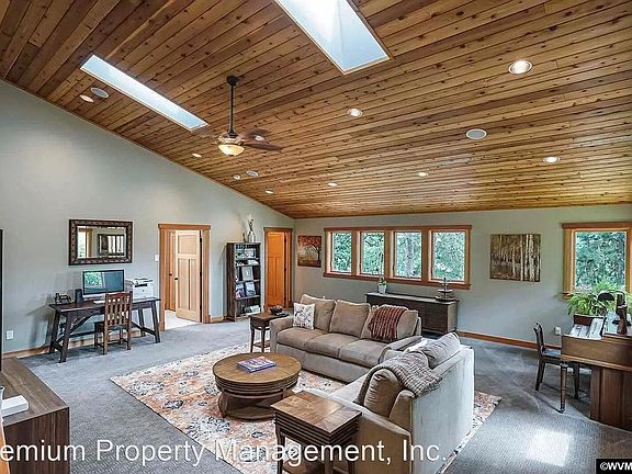 Stunning Four Bedroom in West Salem, Landscaping Provided! - *Scheduling viewings now! Kitchen will not be accessible for viewing due to maintenance. Available for move-in approximately 2/1/2021* [ Furnishings not included ] Located in a serene wooded setting with landscaping provided by Landlord, this four bedroom, three bath home in West Salem is a must-see. Enjoy the scenery and plenty of natural light with large windows and skylights throughout. Entryway opens to a spacious great room with vaulted cedar ceilings and reclaimed wood accents. At the back of the home, there is another large family room with wood stove that leads to the back patio. Two bedrooms on the main floor, and two bedrooms upstairs; one of the rooms on each floor has an en suite bath with walk-in showers. All stainless steel appliances are included in the kitchen, and there is a covered deck off the dining room. Two garages offer abundant storage. Outside there is a cedar shed, perfect for an office or craft space (not to be used as a sleeping area). Please note renters insurance is required ($300,000 min). Tenant pays all utilities Minimum one year lease No pets allowed No smoking Schools - Kalapuya Elem., Walker MS, West Salem HS ~Tenant pays all utilities, unless stated above. ~All properties prohibit pets, unless stated above. ~If the property allowed a pet, AND the pet is approved; the refundable security deposit will be increased $500 per pet. Pet rent will be $35 per month, per pet. An additional pet addendum will be signed. ~All properties are non-smoking. ~Images may be representative of the property. Floor plans, contents and decor can change over time. ~Square footage is approximate. (RLNE6243328)