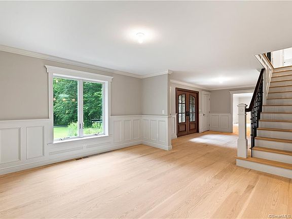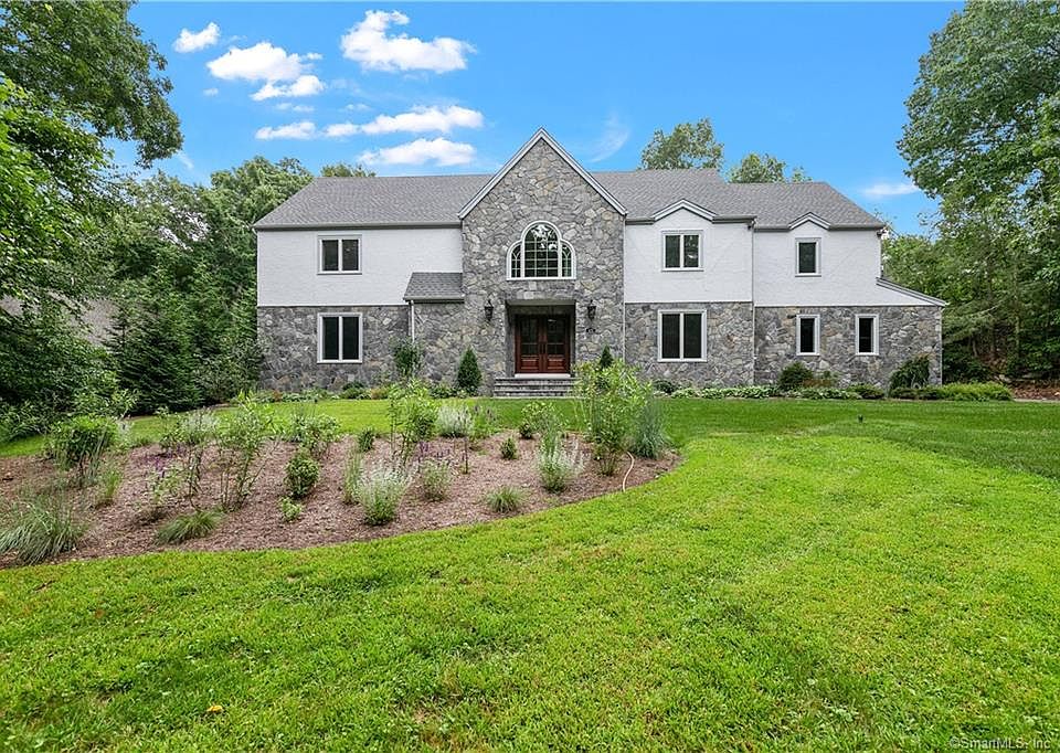 Desirable location, south of Rte 1. Completely updated, stately stone and stucco country home bordering the Westwood Trails. Double French mahogany doors open to the foyer which is flanked by the formal dining and living rooms. Spacious rooms with hardwood flooring, crown molding and beautiful millwork throughout. The chef's kitchen features custom cherry cabinetry, island, quartz counter tops, baking center, and high end appliances. Step down to the breakfast nook which offers a Kalamera wine cooler and a large Bay window with views of the private backyard. Friends and family can gather in the expansive living room which flows to the family room featuring a gas fireplace and French doors that open to a 4-season sunroom. There are 4 bedrooms on the second level, including the master boasting a spa-like bath with soaking tub and shower. The second floor landing offers impressive floor-to-ceiling French arch windows, ideal for a home office or sitting area. A laundry room is conveniently located on this level. The upper level provides unbelievable space TV area with two computer/office nooks with counter space, perfect for those working or studying from home. A full bath with shower and walk-in closet allows for use as a 5th bedroom. The finished lower level walk-out provides an additional 1,200 SF of space. Large bonus/rec. room, gray plank flooring, half bath and ample storage space. Sunroom opens to an IPE deck with basket balusters for easy indoor to outdoor entertaining. Enjoy a private setting, this 5-bedroom, turnkey home sits on a 2.4 acre lot within a cul-de-sac and only 1.4 miles to the historic Guilford Green. 2-car garage with 12' ceilings, central A/C, whole house generator, city water. Over 6,000 SF of space over 4 finished levels. Borders Westwood Trails, 39 miles of hiking trails. Please ask for Seller's description.