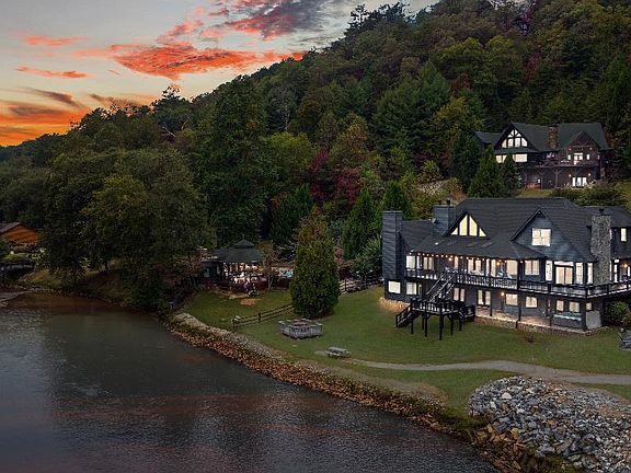 Paradise found! This stunning custom built lodge just steps from the Toccoa River has 140 ft. of river frontage and is just minutes away from the beautiful town of Blue Ridge. Located on the outer bend of the Toccoa River provides you with long river views from the porches and many rooms in the house. This three-level charmer has six spacious bedrooms, each with its own ensuite bathroom. The main suite is located on the main level and has a gorgeous river view and cozy fireplace. The main level also has a second ensuite bedroom, the main kitchen, a family room, a keeping room, formal dining room, laundry room, and half bath. Upstairs you will find a large loft as well as two ensuite bedrooms. The terrace level has a large family room (currently being used as a theater room), a second recently updated kitchen, and two ensuite bedrooms. This fantastic riverside retreat is perfect for full time living, a wonderful second home, or as a short term rental investment property! No HOA! STR ok.
