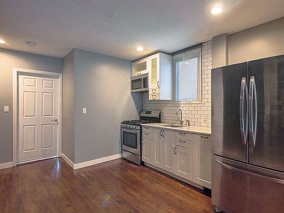 The owner's duplex features a bright and spacious layout with a separate living and dining area, a functional kitchen, and two bedrooms. It also includes access to a private backyard for outdoor gatherings or relaxing weekends. A finished cellar adds flexible bonus space and includes a washer and dryer for added convenience.
