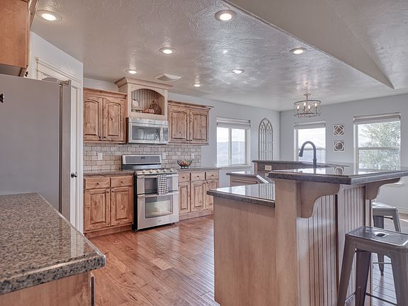Contact realtor JoAnn Bailey at (208)604-3049 for a tour. THIS HOME IS STUNNING! Located near Portneuf Medical Hospital and Idaho State University. Enjoy an impeccable view of surrounding mountains and American falls reservoir. This house boasts crown molding throughout, a spacious kitchen, double oven, hardwood floors, and granite countertops. Six bed, three bath including main floor master and laundry room. Walk out basement is bright, and the family room contains built-in speakers perfect for surround sound music and movies. Beautiful landscaping with a variety of mature plants, rocks, gardening space, a waterfall pergola. and oversize double car garage.
