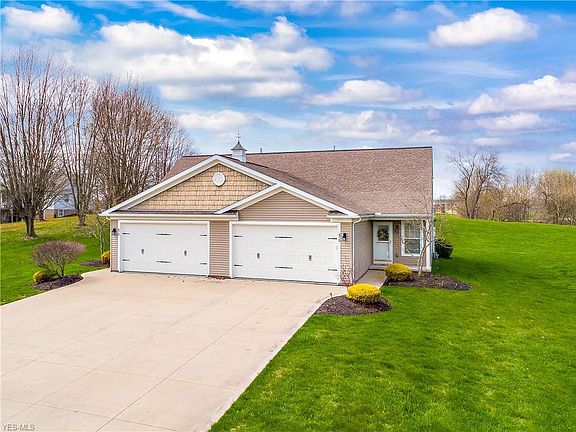 Beautiful Condo for sale in Hartville with open concept and feel! Very generous first floor master suite with a spacious master bath with walk-in shower and walk-in closet! 2 story great room. The kitchen is fully applianced! There are 2 nice size bedrooms and a full bath upstairs as well! There is a convenient 1st floor laundry off the attached two car garage! This condo is situated on a generous sized lot with no one right on top of you & feels open, with a great sized backyard and great sunset views to enjoy from your patio. Priced far below others in the development. This could be a perfect set up if you wanted to live beside your parents, as the condo right beside is also for sale, so call me on the details!