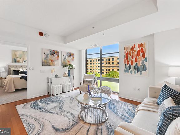 Move-in ready, unit 626, is a light filled two bedroom, two full bath unit that is freshly painted. This unit has floor to ceiling windows in the living room, hardwood floors throughout the main living areas, new carpet in both bedrooms, ceramic tiling in the bathrooms and a washer and dryer in the unit. The kitchen has all stainless steel appliances, large pantry, seating space at the breakfast bar and plenty of cabinets and counter space. The primary bedroom has a large closet and en-suite bathroom. The second bedroom has an extra large walk-in closet and access to a full bathroom across the hall. The building amenities are top notch! Enjoy the fitness center, pool, jacuzzi, community grills, library, club room (with wet bar, kitchen, fireplace and big screen TV) all while enjoying the amazing views from the 12th floor roof top! The expansive, private courtyard (accessed via the 3rd floor) has a park-like setting with seating areas and plenty of outdoor space to enjoy. The K at City Vista is located in a super convenient area with many close by amenities such as Safeway, restaurants, cafes, bakeries, Metro stations (Chinatown and Mount Vernon Square) and easy access to The Mall, Museums, Convention Center and so much more! The separately deeded parking space conveys with the sale of this unit.