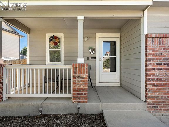 Spacious 2-story home with unfinished basement! This 3 bedroom, 3 bathroom home is located on a cul-de-sac close to walking trails. Home has front porch with room for chairs. Walking into the home, you will notice lots of natural light due to many windows and soaring ceilings. This open floor plan is perfect for entertaining. Living room leads to the dining area & kitchen; which includes a tremendous amount of counter space with extra seating, backsplash, and a pantry. Sliding doors from dining area makes it easy for back yard access and easy grilling. The back patio is the full length of the home and has a new pergola Back yard is flat and perfect for a trampoline or gardening. All flooring on main floor has been replaced along with the baseboards. Upstairs you'll find the Master-Suite, two additional bedrooms, plus an additional bathroom. The Master bedroom has mountain views with a private ensuite bathroom and walk-in closet. The unfinished basement can be finished with bedroom/bathroom, gym space, or additional storage. A/C. Minutes away from I25, Fort Carson, and Powers Corridor. Heritage Subdivision includes parks and attaches to walking trails.
