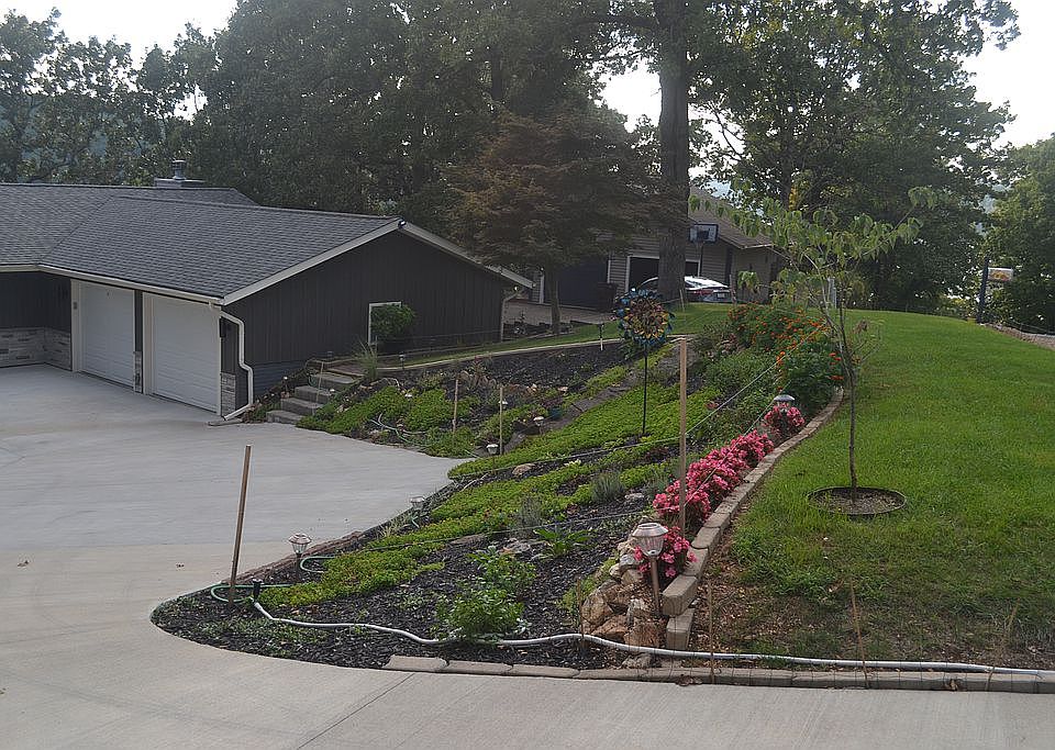 New oversize concrete driveway (plenty of parking). Has shared well and private septic system.