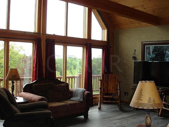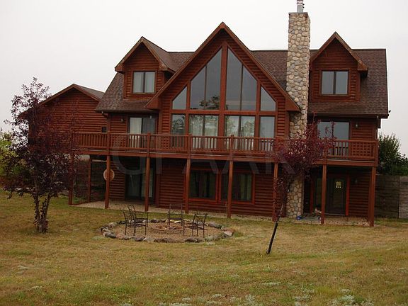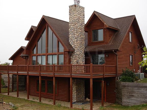 Beautiful, immaculate, log cabin home with a stunning view! This home welcomes you with a wonderful porch to watch the sunrise and invites you into this exquisite home flooded with natural light, beautiful ceramic tiled floors, two fireplaces, granite countertops, main floor laundry, large bedrooms, heated lower level floors, more then enough storage and so much more!!