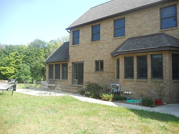 ADDRESS AT STREET IS 4750. Beautiful brick two story on 15+ acres with pond and wooded acreage. SECLUDED off road withs 4 bedroom 3.5 baths. Two story Great room with wood burning fireplace and loft above. First floor owners suite with walk in closet and full bath with shower and garden tub.Foyer has beauiful hard wood floors that lead to formal dining room and eat in kitchen. Stainless appliances and island with gas range top. Lots of windows to view the gorgeous surroundings. 3 bedrooms up as you pass by the loft/office area. Lots of beautiful wood railings. Full bath up.Lower level is spacios and almost finished with walk-out to lower patio. Full bath down also. Patio and deck up off kitchen and greatroom. Only about five miles from freeway. ABC Home Warranty in place. Valmer Titl