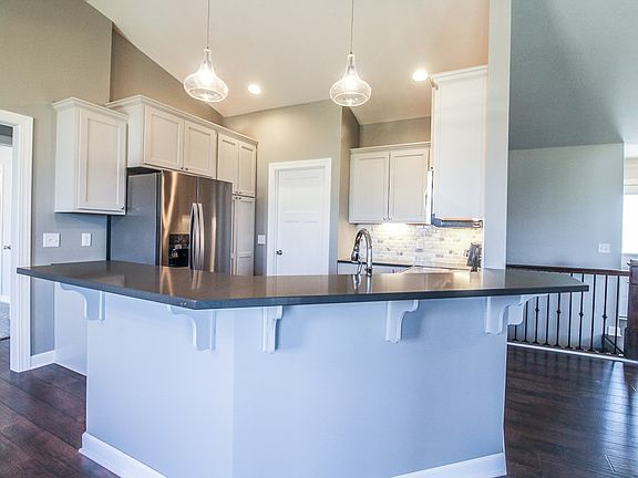 This ranch style newly completed home by Dirk Cott is a "show stopper". Features accentuate the modern and contemporary feel of this 2900 square foot home with mostly finished daylight lower level. Main floor boasts a beautiful master with 2 closets (one walk-in), great master bath with tiled shower and separate toilet/shower room, double sinks and great soaker tub; an open plan featuring a beautiful kitchen with grey cabinets, quartz countertops and upscale stainless appliances; a huge eating area with modern, eloquent lighting and vaulted ceiling; and living room with vaulted ceiling and laminate flooring. Lower level has one bed, one bath, huge family room, and 2 unfinished store rooms. Cul de sac, covered back deck with a magnificent view to the Southwest; sump pump, and tankless water heater are a few of the many wonderful amenities of this well built home. Special taxes not estimated yet. General taxes should be around $3223.64 based on last year's mill levy.