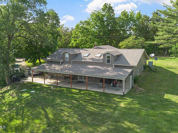 This home is true retreat for those seeking space, style, and serenity. This one-of-a-kind earth berm home was rebuilt in 2015 and offers over 2,150 sq ft of thoughtfully designed living space. The home is filled with natural light, thanks to its smart design and well-placed windows, creating a bright and airy atmosphere throughout. Set on 3.44 acres, the property features a beautiful mix of mature trees and open ground—ideal for privacy, play, and enjoying wildlife in every season. Inside, you'll find a blend of rustic charm and modern updates, with a spacious living room, an updated kitchen, and stylish finishes throughout. Whether you're lounging on the expansive patio, cooling off in the pool, or soaking in the peaceful views, this backyard is designed to be your personal haven.