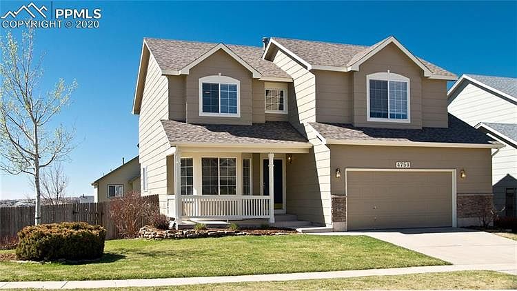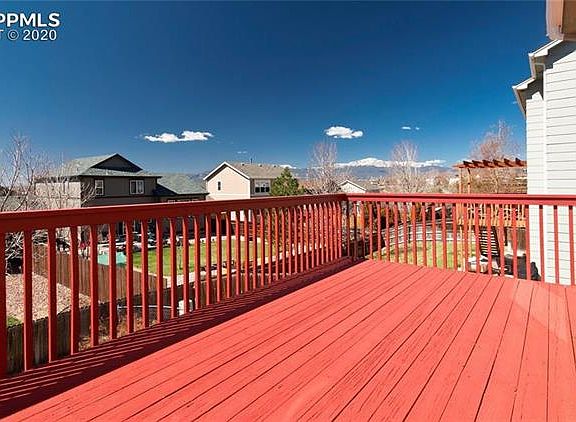 A phenomenal 2 story with incredible Pikes Peak and city views. The home is in superb condition and 100% ready for the most discriminating buyer. Vaulted and contemporary with great room concepts. Located on a corner lot in a gorgeous neighborhood. Gorgeous Kitchen and family room combination with Granite counters, breakfast bar and all appliances. The 2 story family room features a gas fireplace and walks out the rear deck. The deck boasts the views with stair access to huge walkout concrete patio. The upper level features a huge master suite with large walkin closet and seperate 5 piece bath. The 2nd, 3rd and 4th bedrooms are also on the upper level. Bedrooms 3 and 4 take advantage of the mountain views. The walkout lower level is unfinished with rough in bath and room for additional bedrooms, family room, storage, etc. The oversized 2.5 car garage has plenty of room for toys, work benches. etc. The are custom window blinds and custom light fixtures throughout. The rear yard is fully fenced with dog run for the furry family members. The home is ready for the most discriminating buyer.