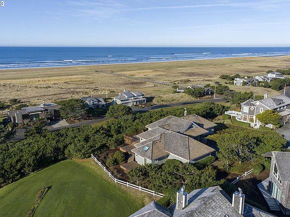Experience an immersive front-row view of the great Pacific Ocean!  This magnificent 3+ bedroom, 2.5 bath single-level custom home, situated high on the ridge next to the 5th tee of the Highlands Golf Course has significant elevation for unobstructed views.  It has been architecturally designed by Ralph Olson from Olson Group Architects to embrace the expansive panorama of views.  The wall of windows that adorns the west wall of the living/dining area beneath a vaulted open-beam ceiling treats you to a breathtaking view of ocean, crashing surf, dramatic sunsets, lights of fishing boats, rolling green golf course and wind-swept dune grasses ? stretching from Tillamook Head to the Columbia River.   The home features hand-planed black walnut floors throughout.  A gas-log River Rock fireplace in the living/dining room invites you to a delightful sunken conversation area and offers to entertain from a large wet bar with built-in cabinetry, Soapstone counters & hammered copper sink.  The kitchen boasts a stunning ocean view, custom cabinets, top quality appliances, Soapstone counters & sliding door to a huge wrap-around ocean view deck.  The exquisite Primary Suite features a seascape view, deck access & bathroom with marble counters and floors, as well as a soaking tub with its own ocean view!  The home?s layout provides considerable separation of the Primary Suite and the two guest bedrooms and elegant guest bathroom.  The loft overlooking the living area and expansive view can be used as a den, office or 4th bedroom.  Enjoy tennis, golf and easy beach access down the boardwalk in this quiet gated community of Highlands at Gearhart!