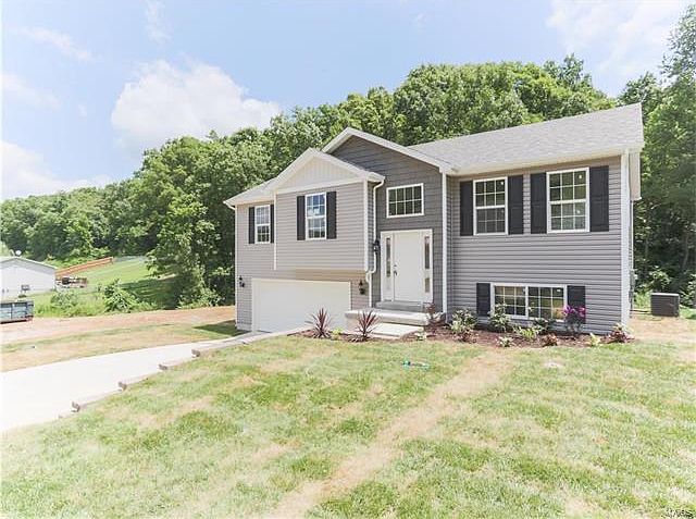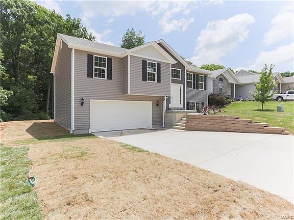 FOR PRIVATE SHOWING PLEASE CONTACT LISTING AGENT, AMY RICHARDSON AT 636-633-6009. This NEW CONSTRUCTION Home is avail and will be complete by July, 2017!This is not your typical split level! This is a HUGE unique floor plan with a split master bedroom plan and Main floor laundry. This home is almost 1300 sq ft on the main level with a finished family room and bathroom and a walk out in the lower level. The Garage is amazing , it is a true oversized garage, This house backs to woods. There are upgraded mocha poplar cabinets w/ Crown and staggered; stainless appliances. There is a vault in the living room. The master bathroom has a walk in closet with a great bathroom with ceramic tile surround in the bath and a separate shower. Come and get this new construction home w/ a 2/10 warranty!