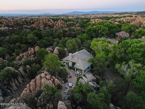 Nestled in The Dells of Prescott, this distinguished residence provides an unrivaled blend of privacy and luxury. This architectural gem spans over 3,090 square feet with a private elevator, three spacious bedrooms, three and a half elegantly appointed bathrooms, an office, and private den with wet bar (perfect for a two-room in-law suite). Other custom features steam shower, and radiant in-floor heating throughout including the 3-Car garage. Large, luminous windows frame the picturesque park-like setting outside, bathing the interiors in natural light and offering tranquil views of the surrounding landscape. Chef-inspired kitchen, equipped with high end appliances and exquisite finishes, perfect for culinary exploits. The living area unfolds to an open concept design, encouraging