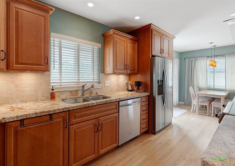 Sea World firework and Bay views from this BP home! Kitchen remodel with custom cabinets, granite counters, travertine back splash, SS appliances and hardwood floors! Master bath with dual vanity, granite counter, travertine tub/shower surround and floors! Entry bathroom with pedestal sink, travertine floors and shower! 2 level home with 2 bedrooms and bathroom on entry level and 2 bedrooms, bath, living and dining room and kitchen on upper level! Floor plan is suited for extended families or roommates!