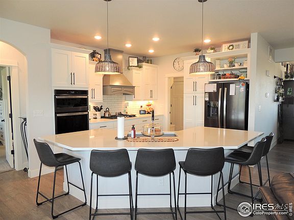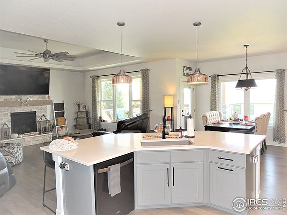 Stunning ranch style home with fantastic open floor plan. This home is better than new and located in the desirable Thompson Crossing neighborhood of Loveland. This wonderful home was built in 2020 and includes an open great room with cozy fireplace, spacious gourmet kitchen huge center island, lots of counter space and upgraded appliances, a luxurious master suite with 5 piece bath and huge walk-in closet, huge windows to let the sunlight in, covered deck with spectacular mountain views, beautiful landsaping, huge unfinished basement to finish as you wish or extra storage, No Metro Tax, close to I-25, Hwy 34 shopping and more! Hurry to see this one for yourself!