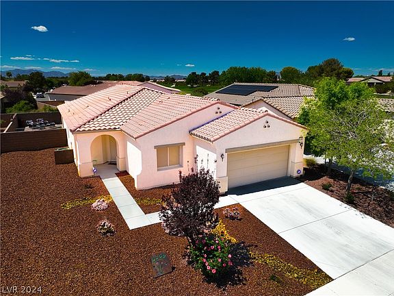 Experience refined living in the peaceful Mountain Falls Golf Course community in Pahrump, Nevada, with this welcoming open-concept home. Enhanced with custom-built California Closets in the primary bedroom and laundry area, a water softening system, and reverse osmosis, this residence embodies comfort and convenience. It features a heat barrier in the roof for optimal air conditioning efficiency, tile flooring, custom blinds, and a comprehensive ADT security system, including surveillance cameras and a video doorbell for both elegance and security. High-speed fiber internet connectivity is bolstered by a robust security door. The kitchen is fully outfitted with stainless steel appliances, and the offer includes a washer and dryer. The property boasts a large, professionally landscaped backyard that's easy to maintain and a low-maintenance front yard, freeing up more time to enjoy the stunning surroundings.