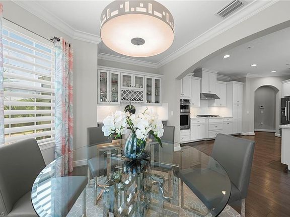 Arrive in style as your private elevator opens directly into an elegant foyer, revealing a fresh and contemporary open floor plan designed for effortless entertaining and everyday comfort. The gourmet kitchen is a chef’s dream, featuring a sleek gas cooktop and refined finishes, while a spacious breakfast room with a built-in beverage center invites you to savor your morning coffee in serene sophistication. The expansive living and dining areas flow seamlessly, offering flexible space for intimate gatherings or grand entertaining. Step onto the massive wraparound lanai, where negative-edge sliders blur the line between indoors and out, creating a stunning backdrop of swaying palms and soft Florida breezes—perfect for year-round relaxation. The private primary suite is a retreat of pure indulgence, complete with a luxurious soaking tub, separate shower, and generous walk-in closets. Two additional guest suites with en-suite baths ensure every visitor enjoys comfort and privacy, while a separate den and elegant powder room provide an ideal home office or cozy media space. For peace of mind, the residence offers full storm protection, two parking spaces (including one covered), and a spacious private storage closet. Cielo residents delight in a sparkling pool with tranquil lake views, while the prestigious Colony lifestyle includes exclusive access to The Bay Club’s private waterfront dining and a private beach island accessible by boat. Experience a world of recreation with tennis, pickleball, bocce, canoeing, and kayaking, plus a state-of-the-art fitness center—all included with no additional fees. Optional membership at two championship golf courses is also available for those seeking the ultimate sporting experience. Located just minutes from Coconut Point’s upscale shopping and dining and a quick 30-minute drive to Southwest Florida International Airport, this remarkable residence combines timeless elegance with modern convenience. Live your best luxury lifestyle, where every detail is designed for refinement and ease.